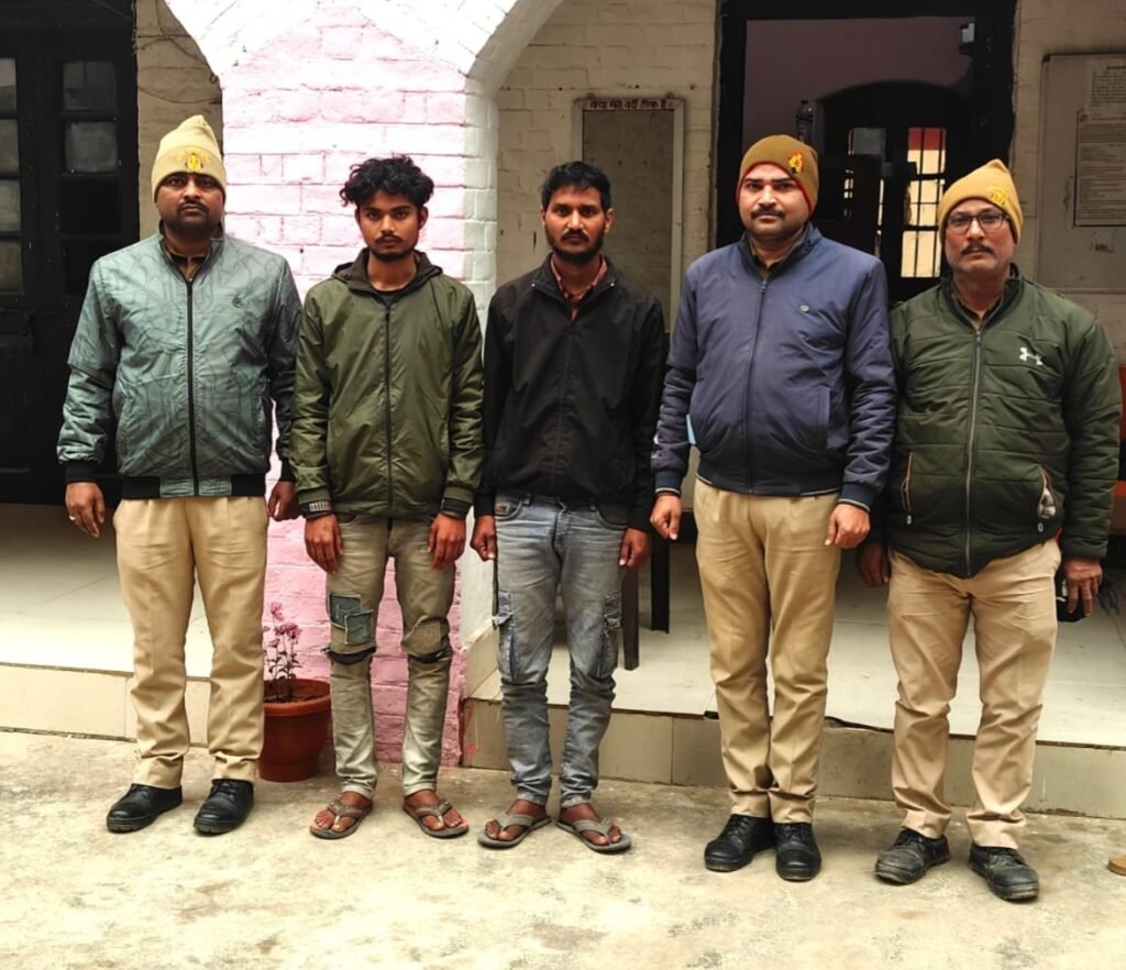 पुलिस ने मुखबिर की सूचना पर नूनखार स्टेशन के पास से अभियुक्त अरुण निवासी छपरा (बिहार), विकास निवासी सिवान (बिहार) तथा एक बाल अपचारी को गिरफ्तार किया। अभियुक्तों की निशानदेही पर चोरी किए गए 5 मोबाइल फोन बरामद किए हैं।
